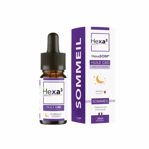 L’Huile CBD Sommeil Hexa3 associe 20 % de CBD Full Spectrum (soit 6000 mg dans le flacon de 30 ml) à de la mélatonine, pour favoriser un endormissement rapide et un sommeil profond. Son arôme naturel de fraise rend la prise sublinguale agréable, loin de l’amertume des huiles classiques. Issue d’un chanvre biologique certifié, elle est fabriquée en France selon des normes strictes d’hygiène et de qualité.